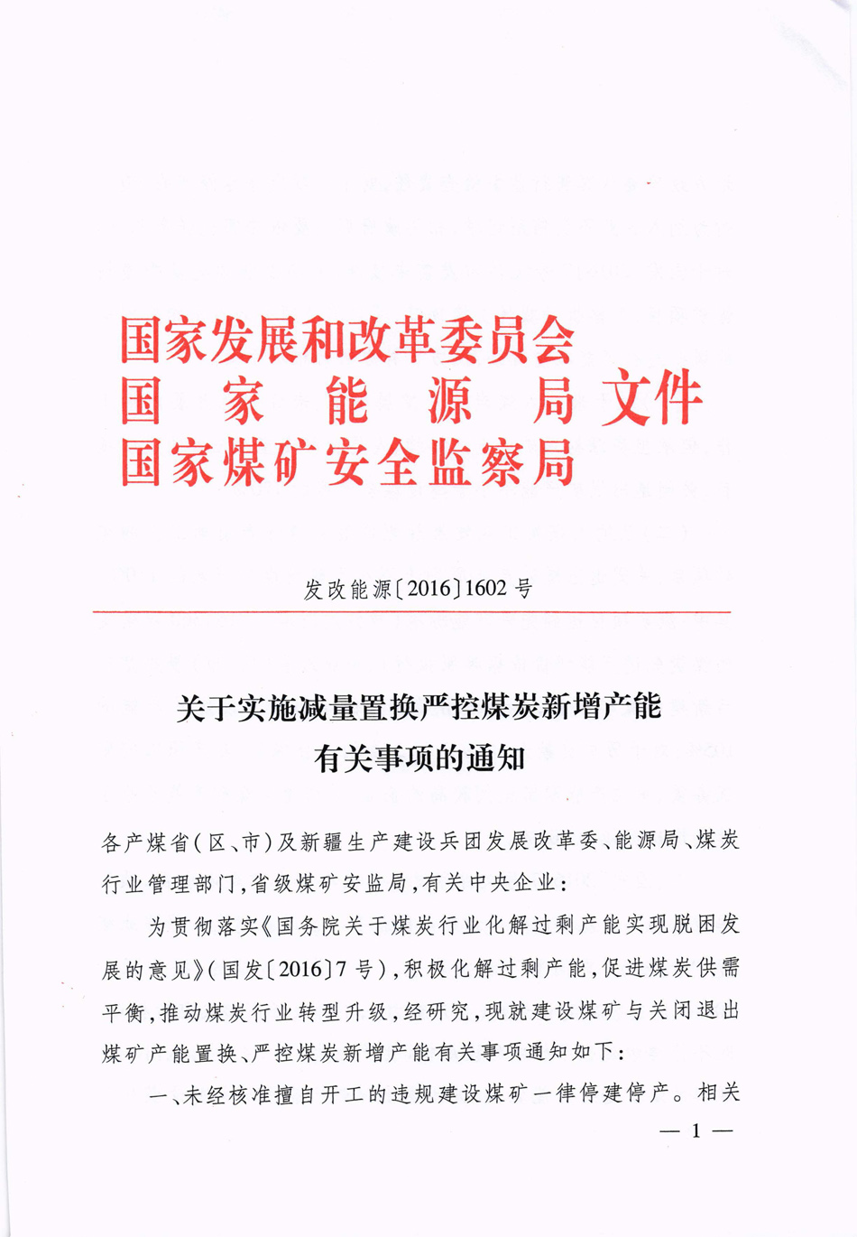 减量置换严控煤炭新增产能有关事项的通知